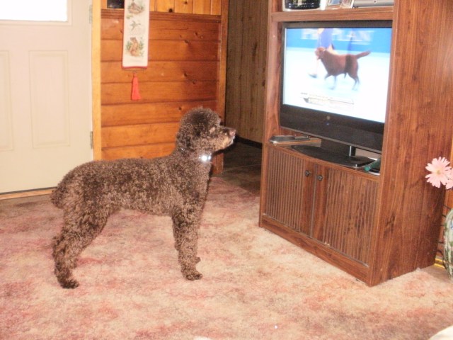And loves to watch other dogs on TV!