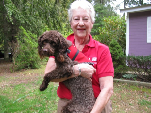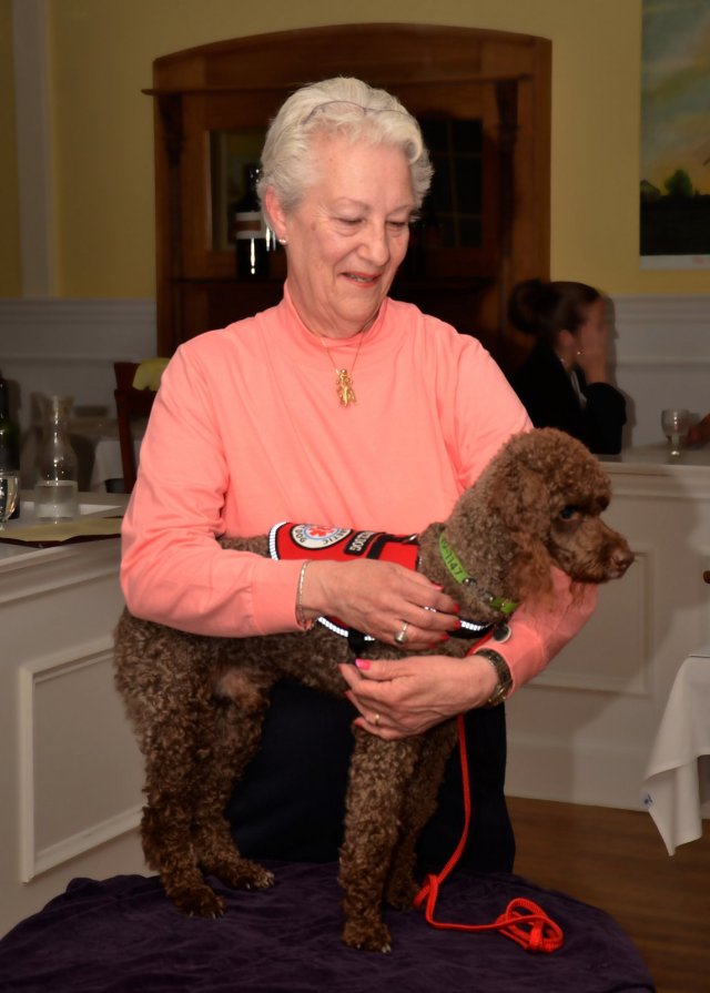 She’s a diabetic. She was asleep in her house on Jaspa Road about two years ago. It was 5:30 in the morning and Cappy, her two-year-old miniature poodle, “jumped up on the bed, which he never does, and he cried and licked my face and woke me up,” recalled Irene. “He kept pushing me with his paws as if to say, ‘You’re going to get up, one way or the other!’ And when I got up, I felt very queasy and fuzzy. My blood sugar was very low. Now I usually sleep much later than that and if I’d slept for another couple of hours, I could have been in a coma or dead. He saved my life.”