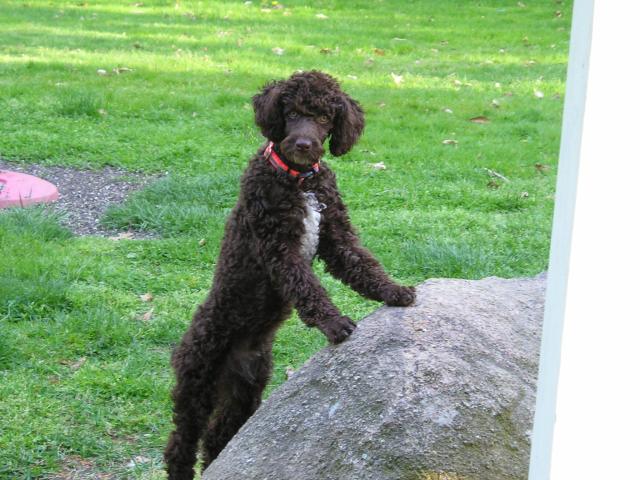 I had a Poodle years ago and decided to check the ads in the paper for one. Came across an ad and called. The woman said the puppy was mahogany color with green eyes and I had to see him. I called my friend Jane and we drove up to Shirley, LI the next day. Jane was trying to talk me out of getting another dog right away, but the house was too lonely. The woman brought this bundle of fluff out and it was love at first sight … for both of us. She said several people had come to look at him and they thought he was too shy. He was also 3 months old. Well, he took to me right away and was anything but shy. When I tried to hand him back to her to sign the papers, he did not want to go to her. I like to think he was waiting for me to come along. When we got home, the poor dog didn’t know what grass was and stuck to me like glue. Jane said Cappy knows he is my dog.