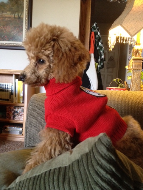 Gotta love a beautiful Sugar Dog, sporting a new red vest!